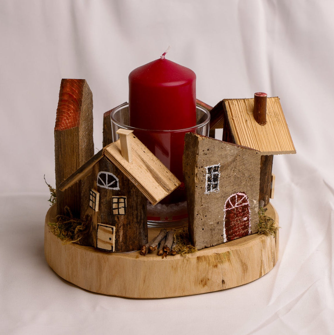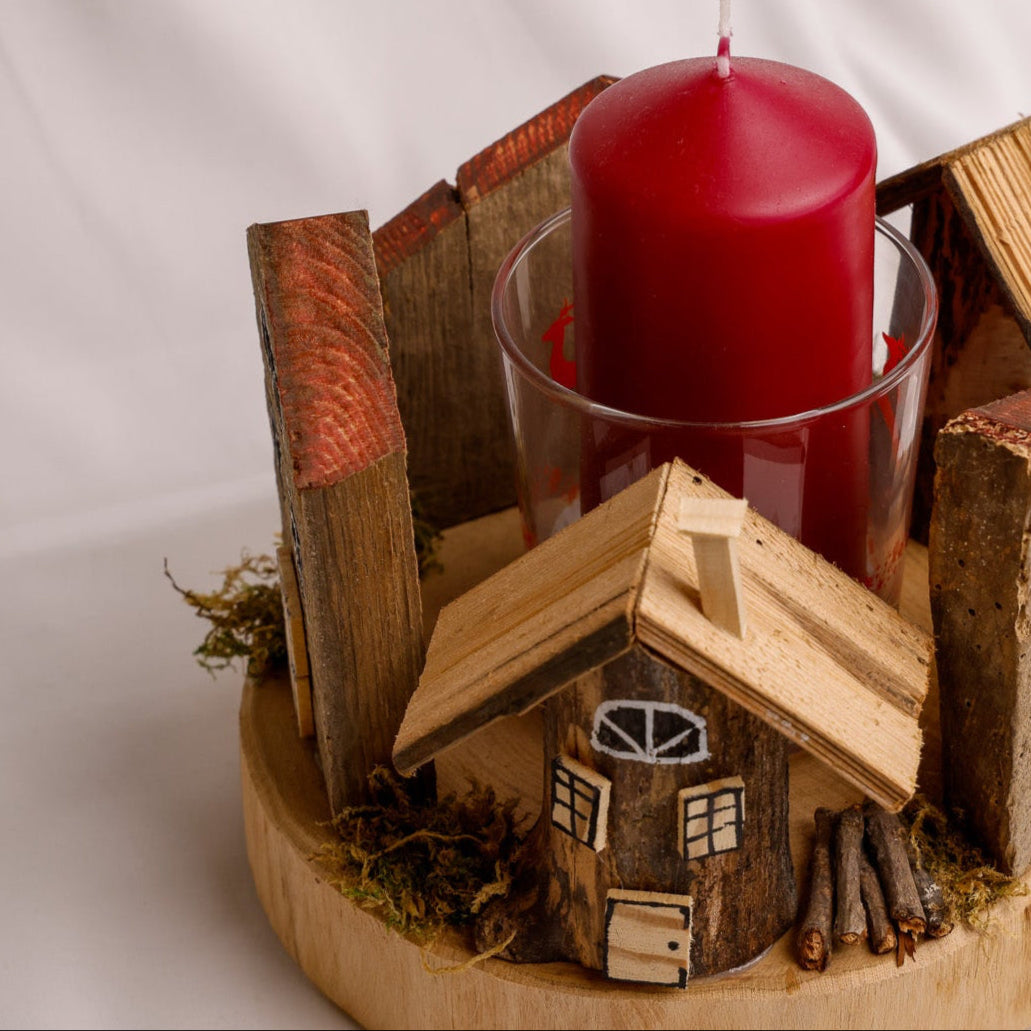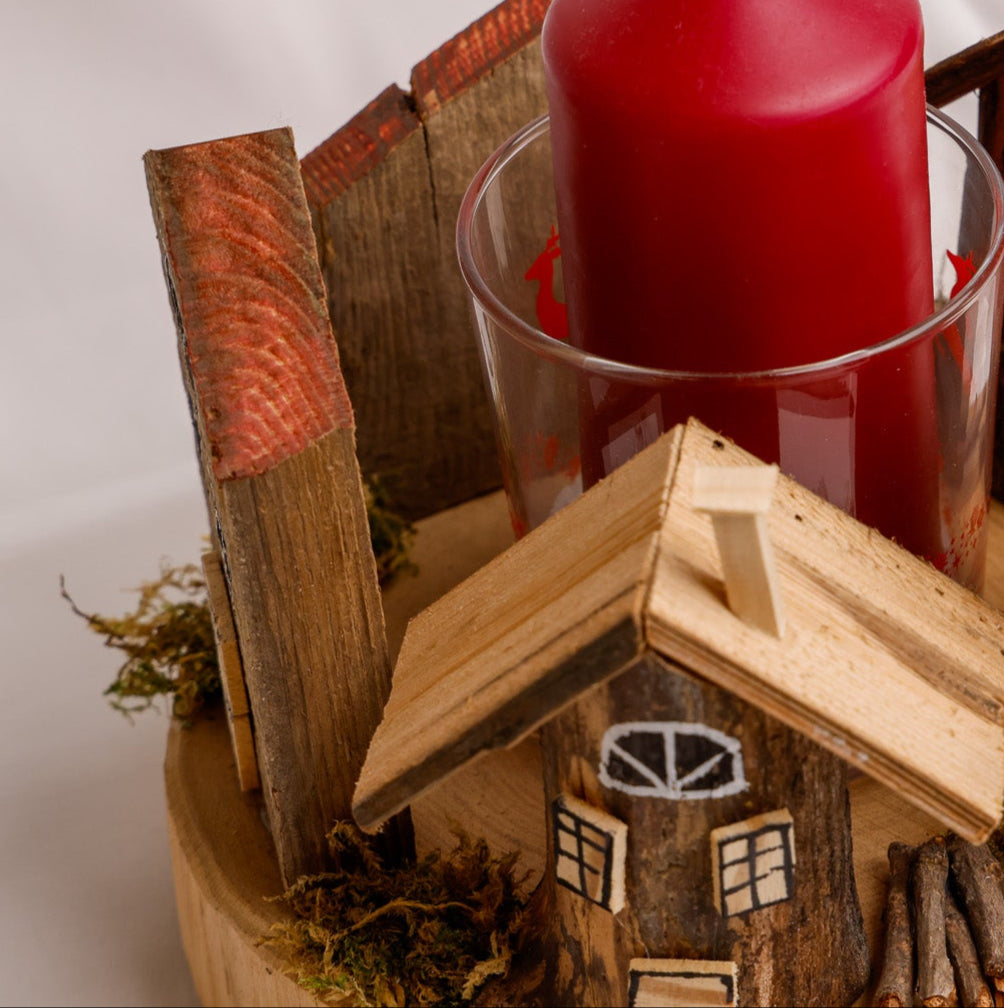 Realizzato in legno di recupero con corteccia naturale, questo centro tavola con candela trasmette un’eleganza rustica e sostenibile. La candela intercambiabile, ospitata in un raffinato porta candela in vetro, permette di rinnovare facilmente l’atmosfera del tuo tavolo. Un dettaglio unico che porta calore e stile, perfetto per valorizzare ogni occasione con un tocco di natura e versatilità.