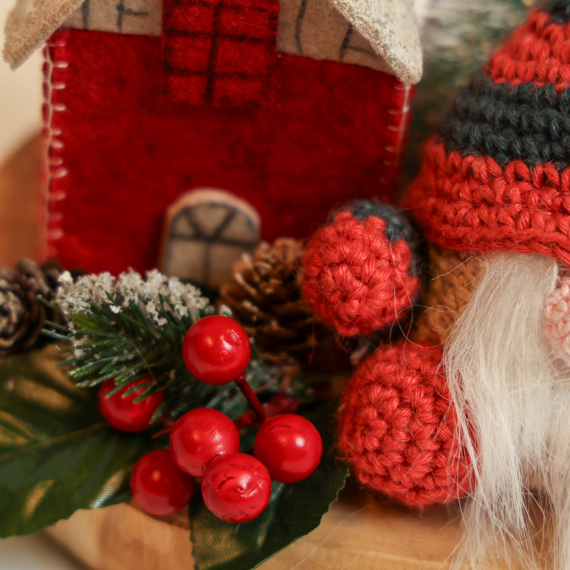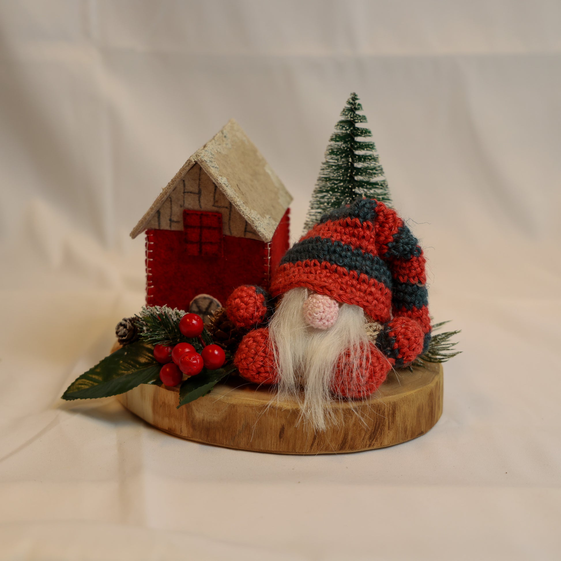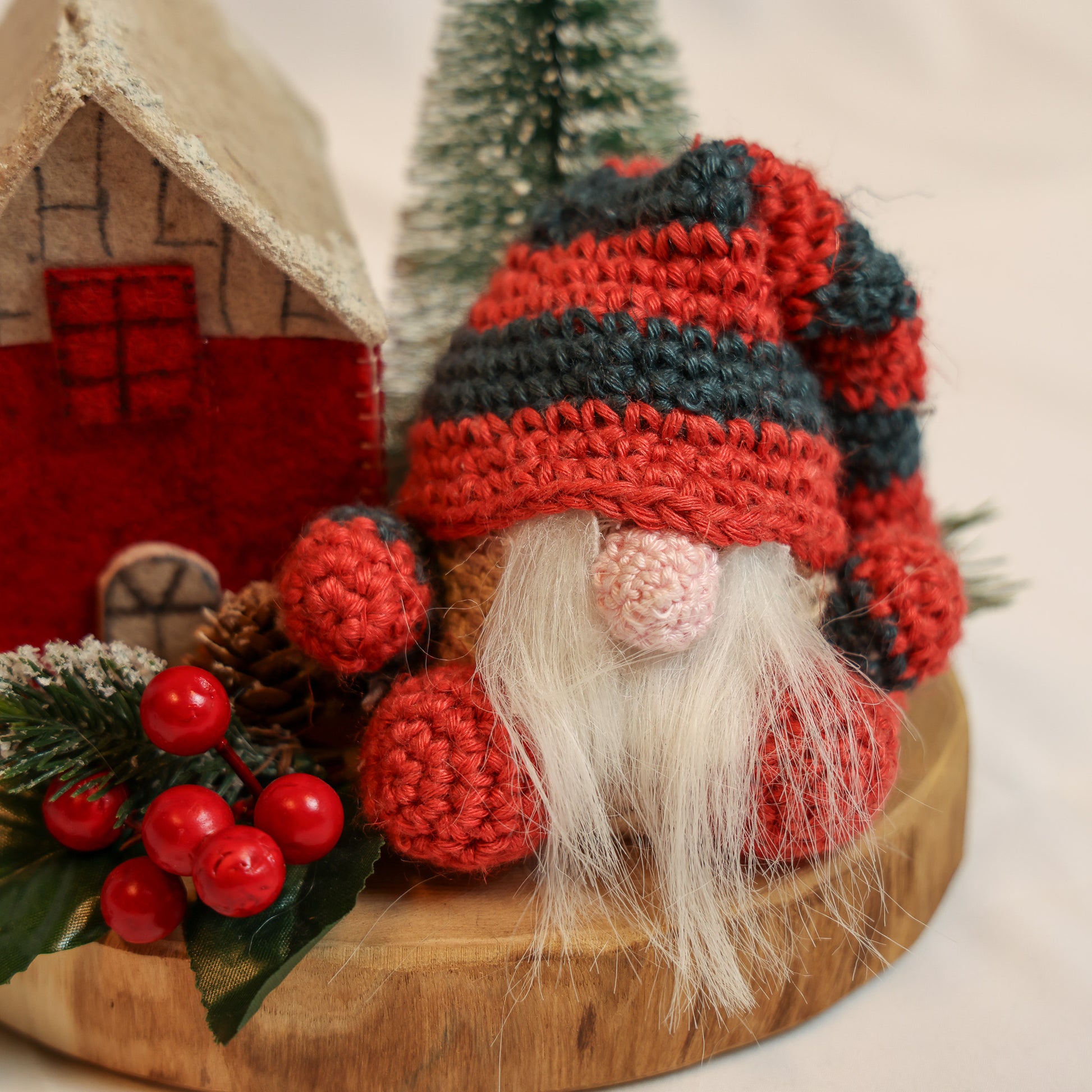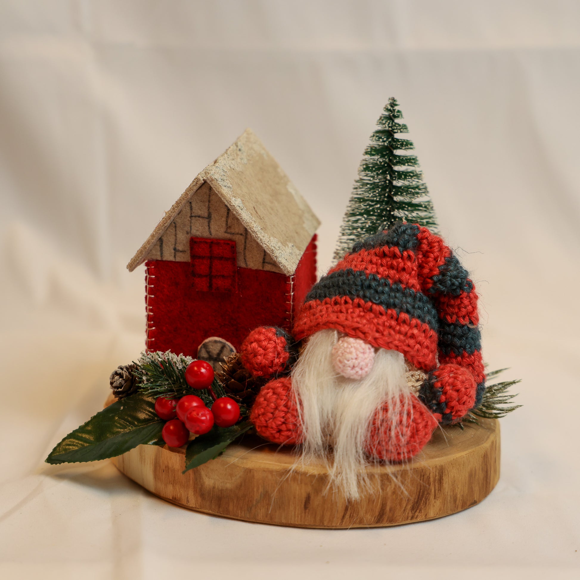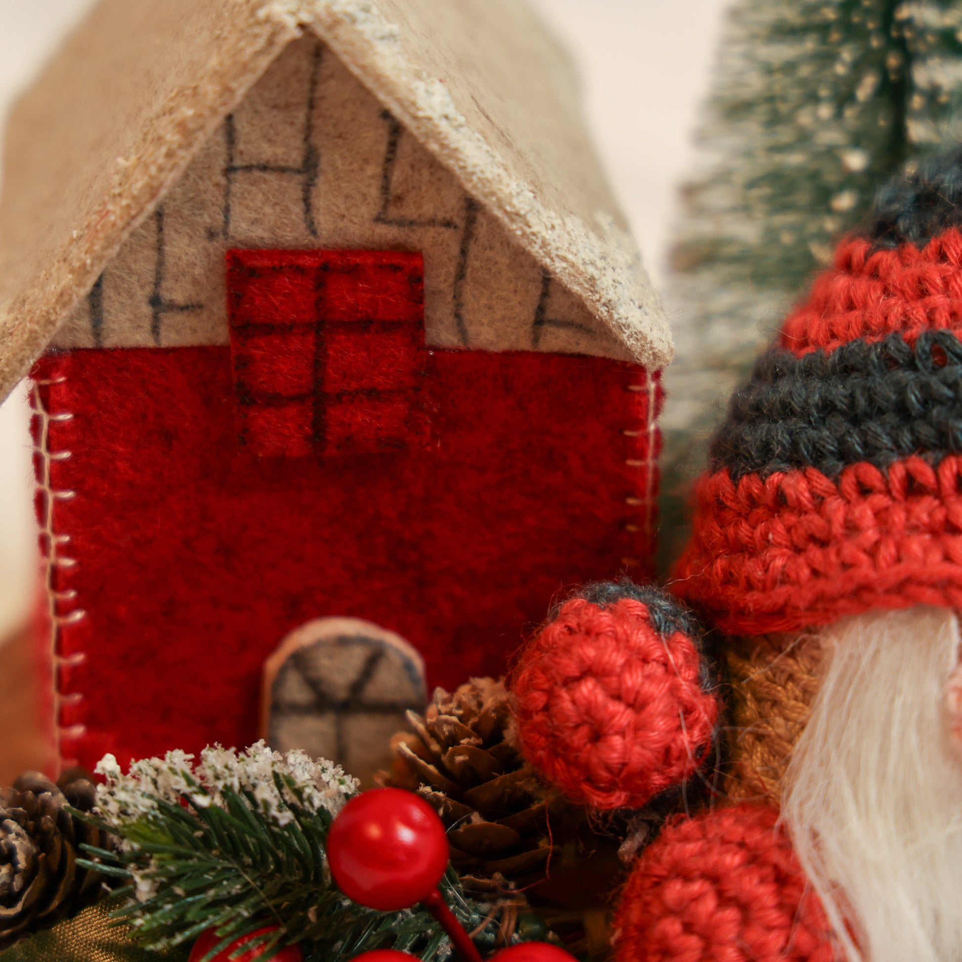 Gnomi e alberi in feltro fatti a mano.